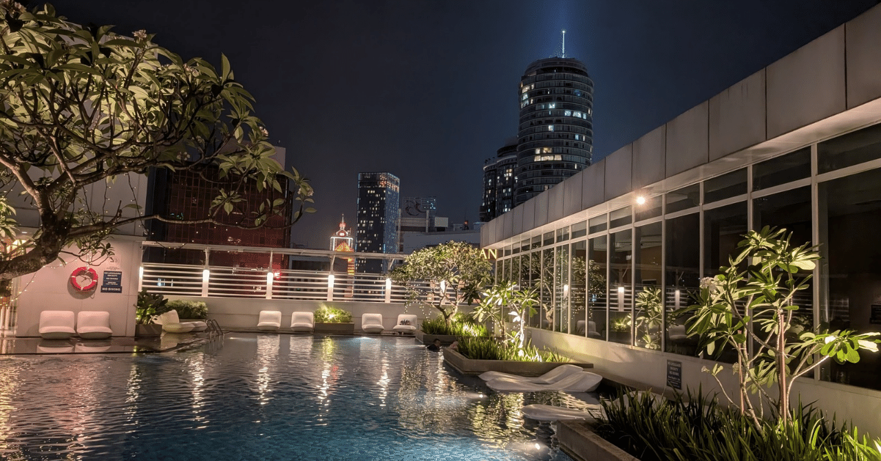 部屋は32 ㎡でキッチン付きリビング寝室別の綺麗な快適空間でした。屋上プール・ジム・無料WiFiも利用でき、接客対応も良かったです。